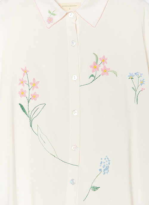 Note the delicate hand embroidery inspired by the joy of keeping fresh flowers at home. We value and care for craftsmanship.