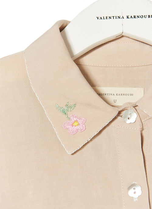 Note the delicate hand embroidery inspired by the joy of keeping fresh flowers at home. We value and care for craftsmanship.