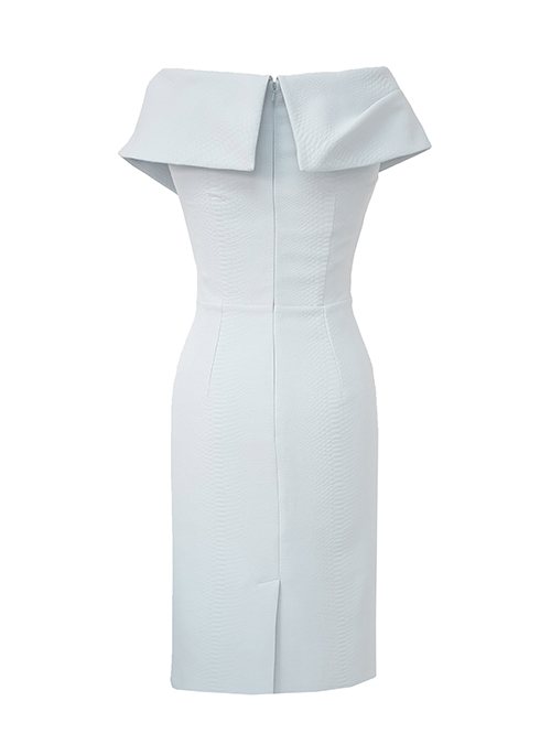 Our Olympia dress has a classic sophisticated style that, through elegant details to the waist and neckline, is a very flattering dress. Working with crepe fabric also enables the design to lie close to the skin, fitting you like a glove. Additionally, finishing touches to the dress such as its unique draped neckline, creates for the ultimate chic look.