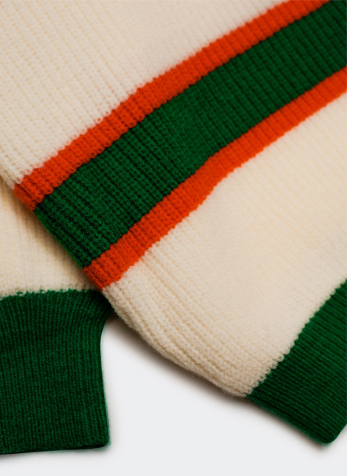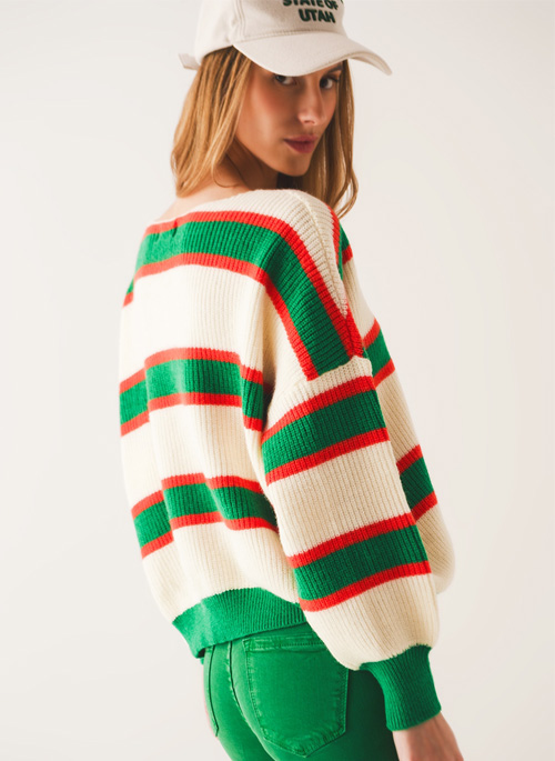 NEW CROP GREEN AND ORANGE STRIPED SWEATER Details: 52% Acrylic 28% Polyamide 20% Polyester. Model is wearing size U. Model is: 31-22-35 Height: 6". Runs true to size. Regular Fit. Style Nº: 5291613.