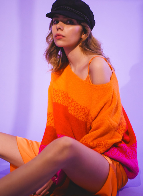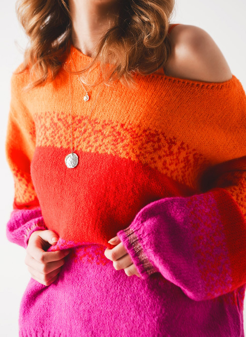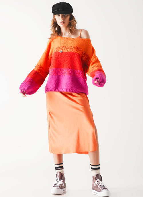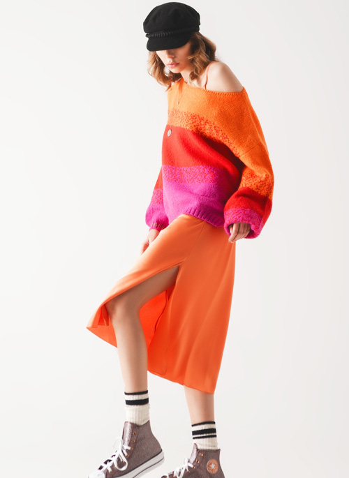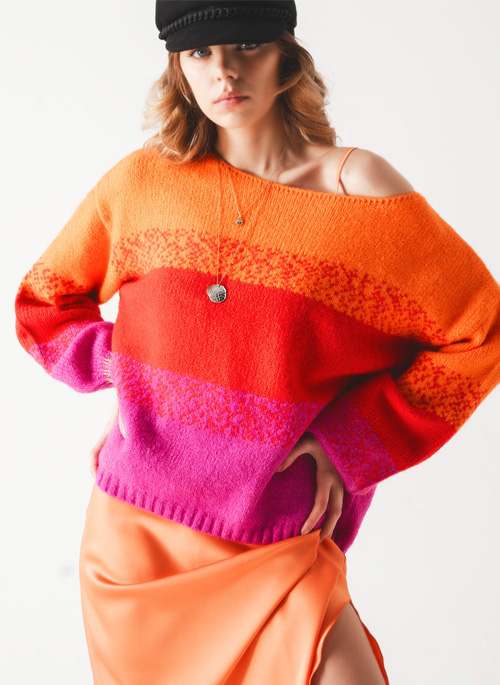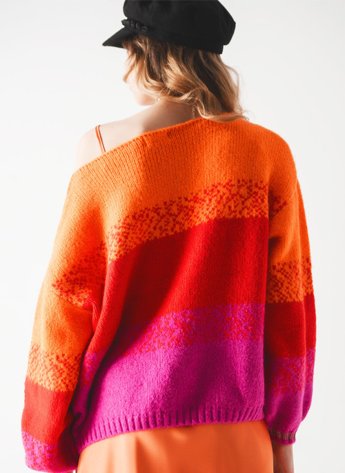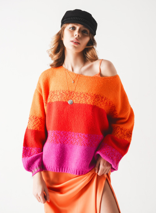 NEW ORANGE KNITTED SWEATER WITH MÉLANGE STRIPES