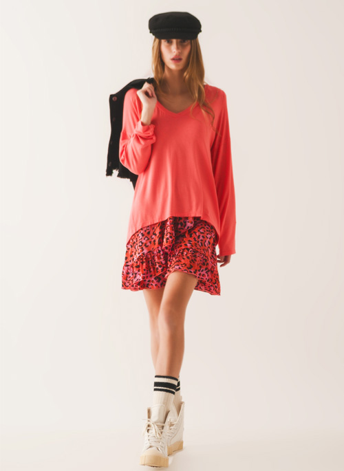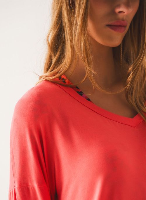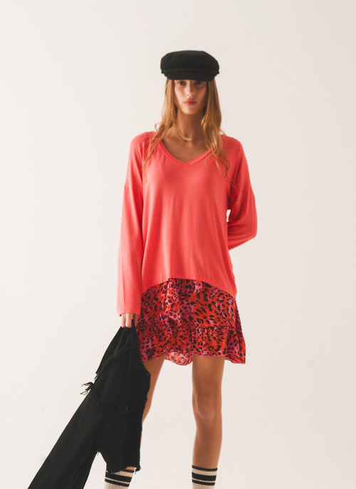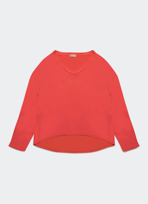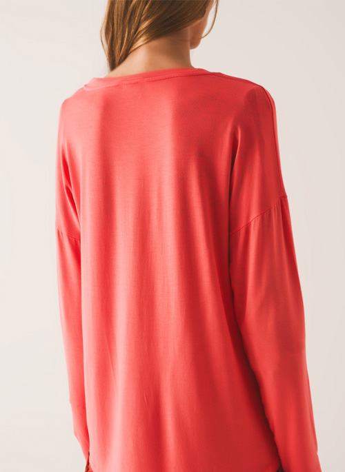 NEW ORANGE LONG SLEEVE V NECK TOP IN MODAL Details: 93% Modal 7% Elastane. Model is wearing size S. Model is: 31-22-35 Height: 6". Runs true to size. Relaxed Fit. Style Nº: 6217321.