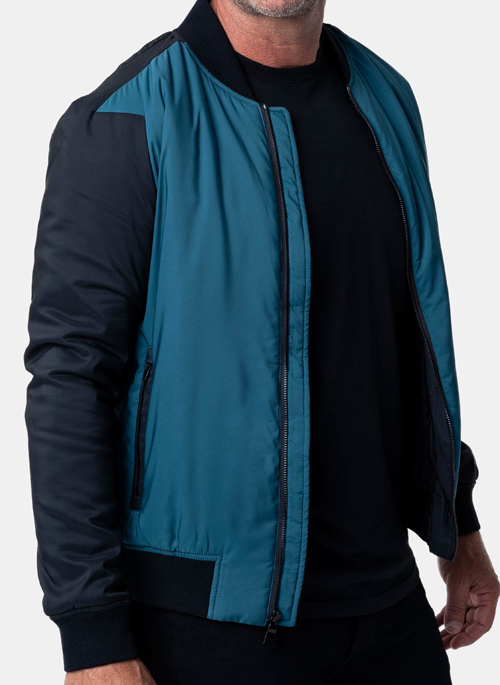 Color fusion, outstanding craftsmanship - ORCHID is a lightweight bomber jacket cut from sleek water-resistant nylon polyester, lined with rich Italian satin, and filled with a polyester blend. Ribbed collar, hem, and cuffs create a desirable fit, amplified by distinguished accents.