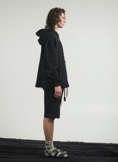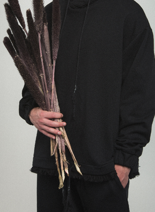 100% organic cotton hoodie with tapered fringe cords at the hem. The certified 100% organic cotton fabric is sourced from a qualified, European manufacturer and the garment is made ethically in Hungary.