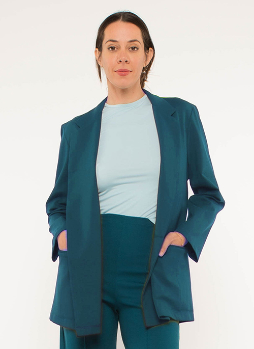 Soft ponte knit fabric creates the perfect "relaxed but chic" look but doesn't wrinkle. An oversized blazer that lives somewhere between zoom meetings and backyard dinners. Self-lined lapels and deep pockets. The perfect piece to pair with our wide or slim leg pant.