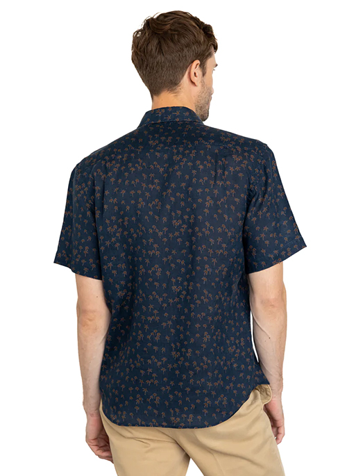 Drink in hand + Parked at the pool = Summer Vibes. This summer-ready short-sleeve shirt is patterned with a unique palm print on buttery soft linen.
