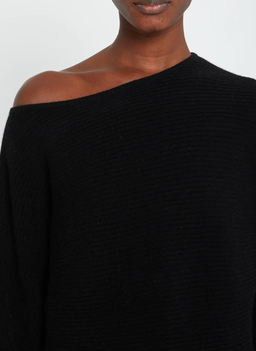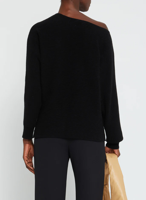 This seamless, ribbed knit sweater is done with a classic boat neck that can be worn on or off the shoulder. Made from soft and cozy, 100% Mongolian cashmere.