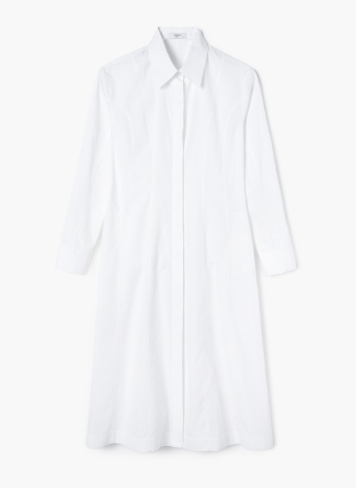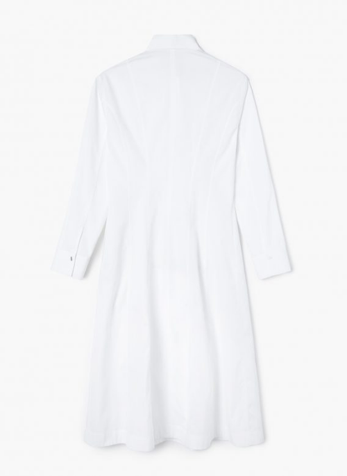 Fitted panel constructed midi shirt dress with pointed collar, long sleeves and buttoned cuffs.Details: