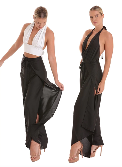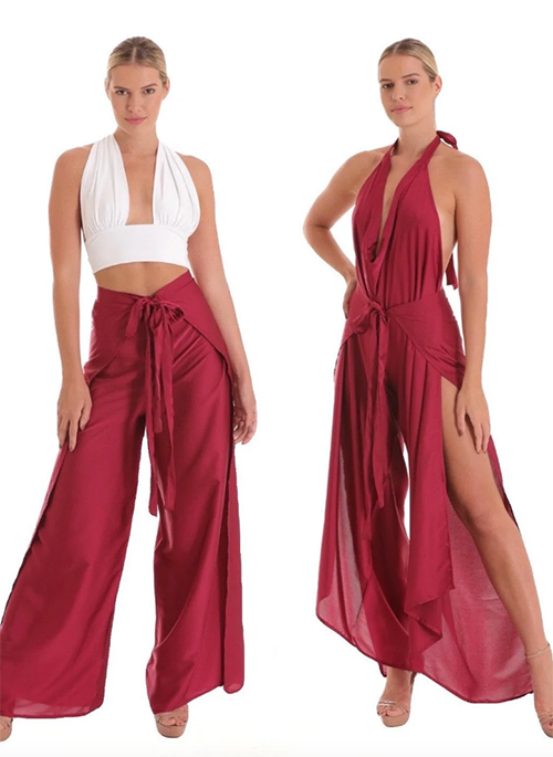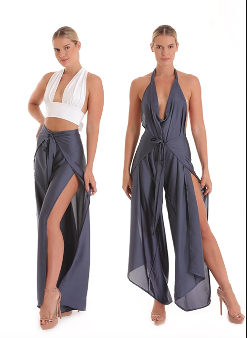 This versatile 2IN1 transforms from Pant to Jumpsuit, your next closet staple!