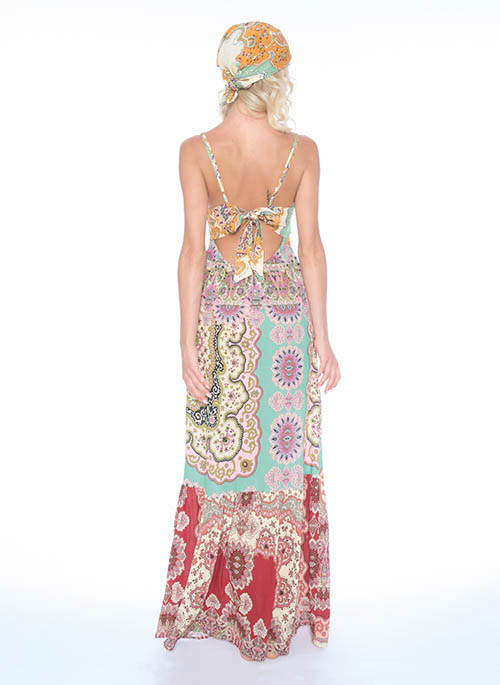 Make your look unique with this long dress with an unmistakable style. L timeless cashmere print and bright studs create a summer dress suitable for any occasion. The strategic back closure leaves the back uncovered in a sensual neckline. Elegant and in light viscose will prove to be the perfect ally of the summer.
