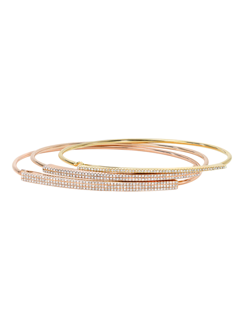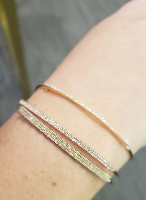 A delicate 14k yellow gold bangle with a sparkly line of 0.15ctw diamonds.