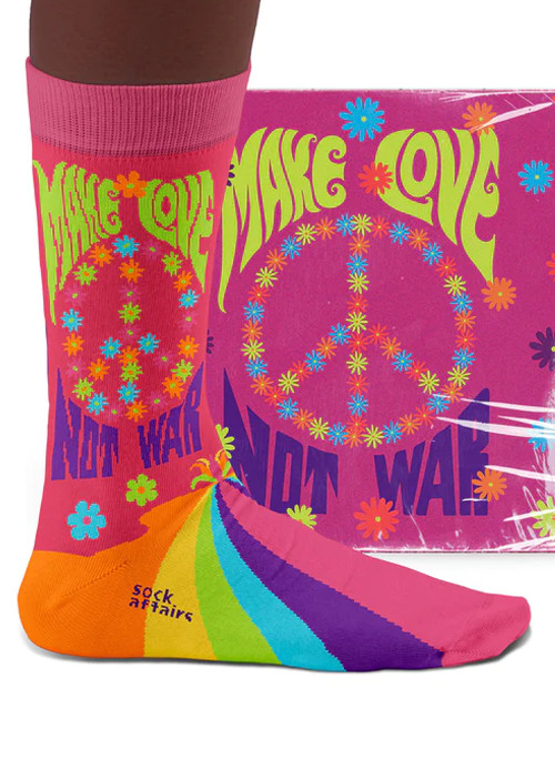 Based mainly out of San Francisco, California, the hippie movement promoted their tolerance of drugs, loving humanity, and protesting all forms of war. With the USA stuck in the Vietnam war, the world was very black & white with a hint of camouflage thrown in. Through LSD-influenced art, the world was opened up to trippy colors and patterns which had never been seen before. It looked like humanity was going to be all right now and we were all going to make love, not war.