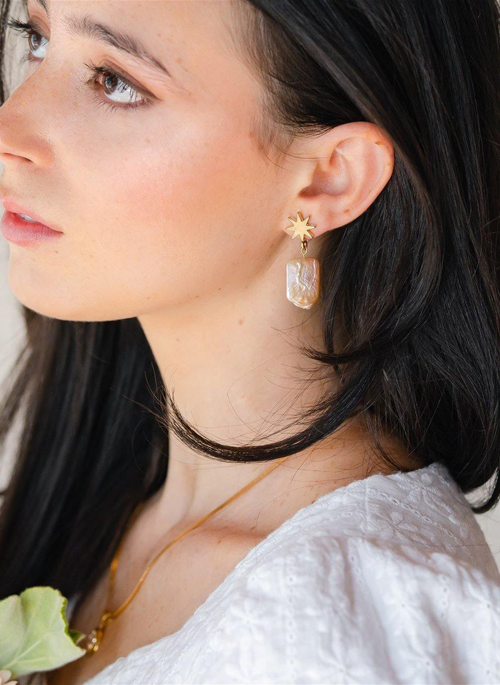 - Effortless: These gold star + peachy pearl earrings are a fun statement piece. Wear these on those evenings out or elevate those comfy WFH clothes with earrings that are sure to stand out. Day or night, this gorgeous combination will compliment your already great sense of style.