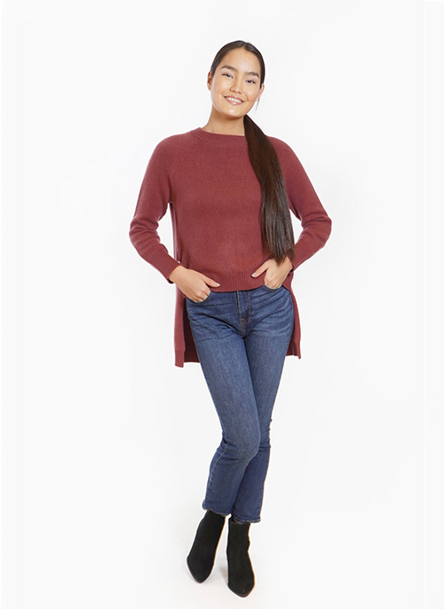 The Cashmere Backslit Sweater by Bitter Grace is comfortable and feminine