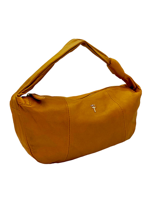 The embodiment of neo-luxury and a symbol of the renaissance, Thalie’s Pia is masterfully assembled from upcycled nappa lambskin and has a softly rounded shape with knotted handle raised at one side. Finished with Thalie’s initial, ‘T’ logo plaque, this baguette bag is minimalist and timeless and will be able to hold your essentials, such as your phone, keys and wallet.