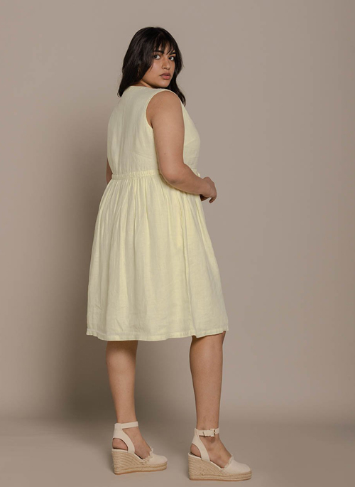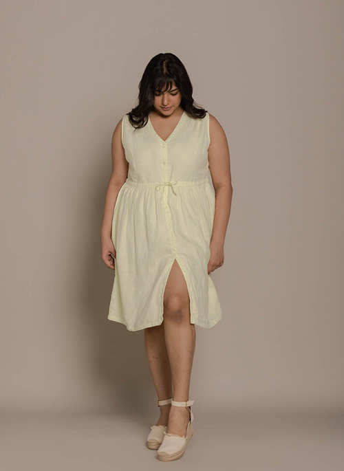 With a relaxed V-neck, this drawstring dress can be cinched at the waist to suit your comfort. Hidden in-seam side pockets make it more functional.