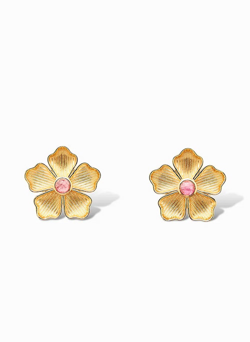 Our Large Floral Studs set with a pink tourmaline center stone add a feminine, subtle statement and playful elegance to any look. Designed to be worn day-to-night.