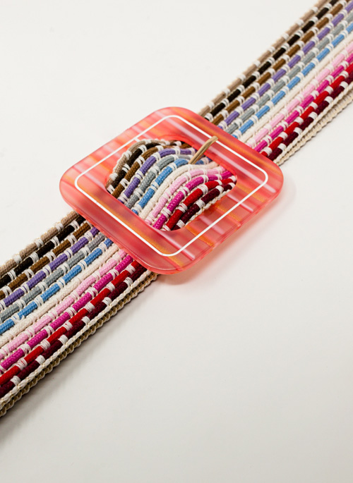 NEW WOVEN BELT WITH SQUARE BUCKLE IN PINK