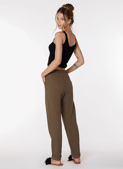 This classic pant can be dressed up and worn around town or they can be your favorite lounge pant! They were designed with two patch pockets, drawstring waist, and rolled cuffs.