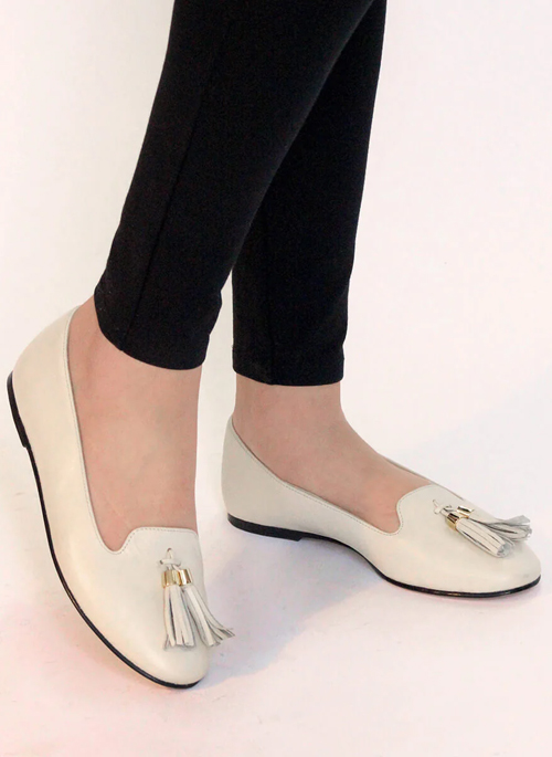 Discover the unique charm of our Polina flat! It stands out for its tassel on the front, decorated with leather straps that add a luminous touch to its classic design. It is the perfect accessory for your casual occasions, giving you style and comfort in one step.
