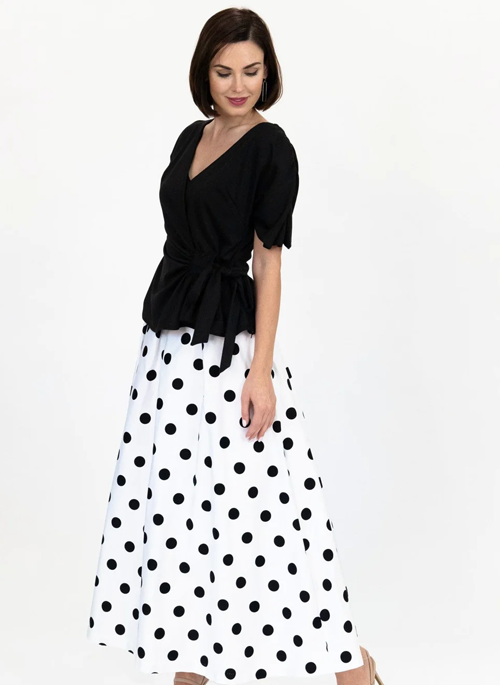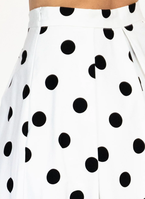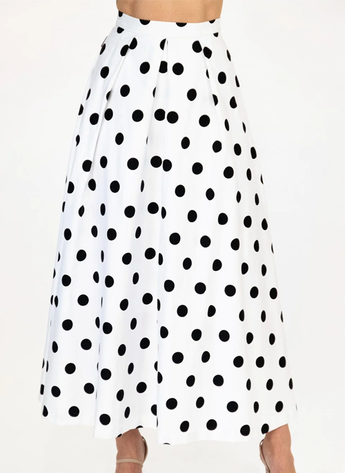 A timeless, classy polka dot midi skirt that you will keep in your closet for years to come.Details: