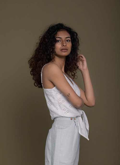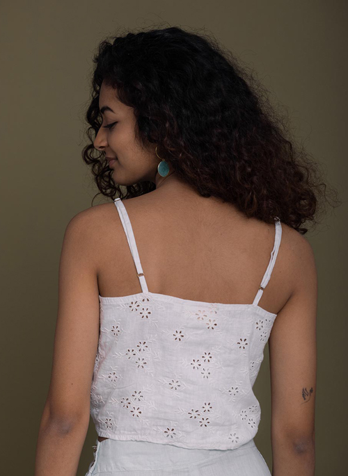 This airy camisole-style top is a wardrobe essential with adjustable straps, a tie-up front and allover eyelet embroidery.