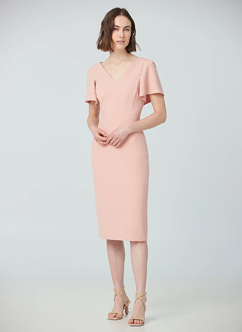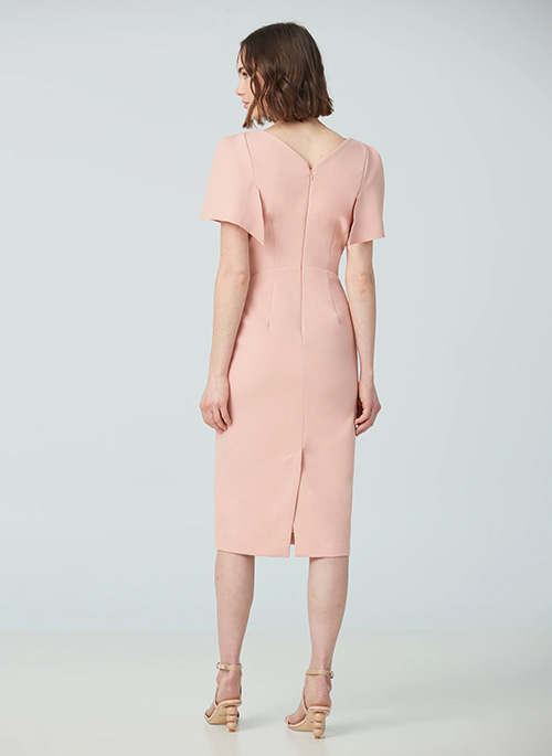 This fabric was imported from Italy. Our design team fell in love at first sight with the texture and appearance of the fabric. A classic dress in a light and comfortable fabric with fun bell sleeves that add charms to the piece. A timeless one to have in your wardrobe.