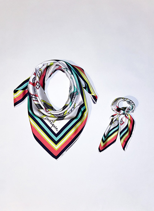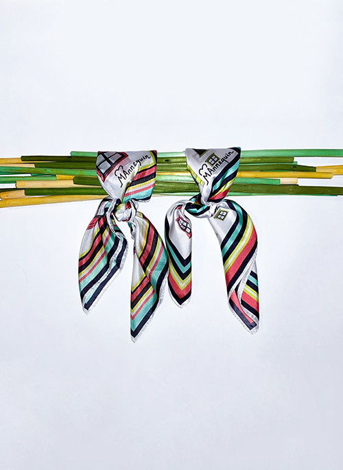 You can wear the "Precious" silk scarf on your hair or tied around your neck. It can look amazing as a bracelet around your wrist or tied on your favorite bag.