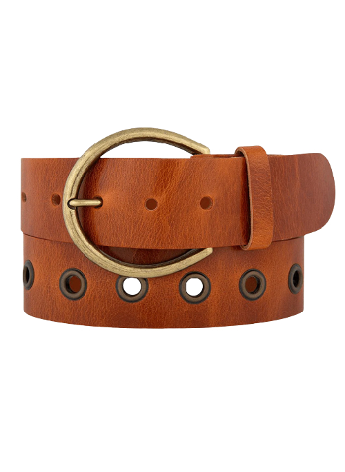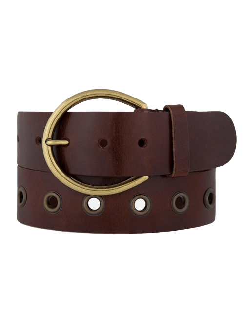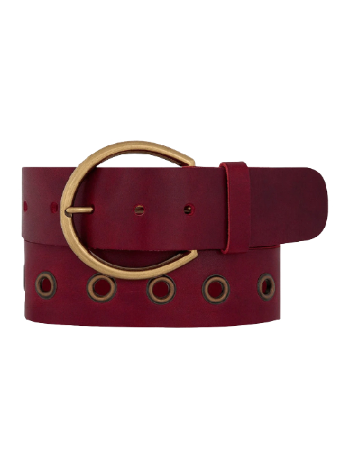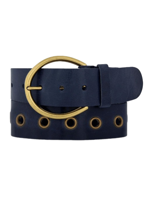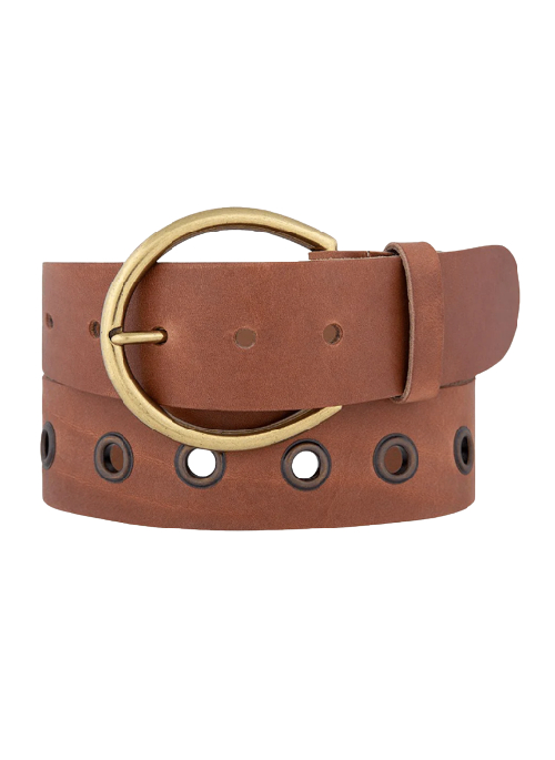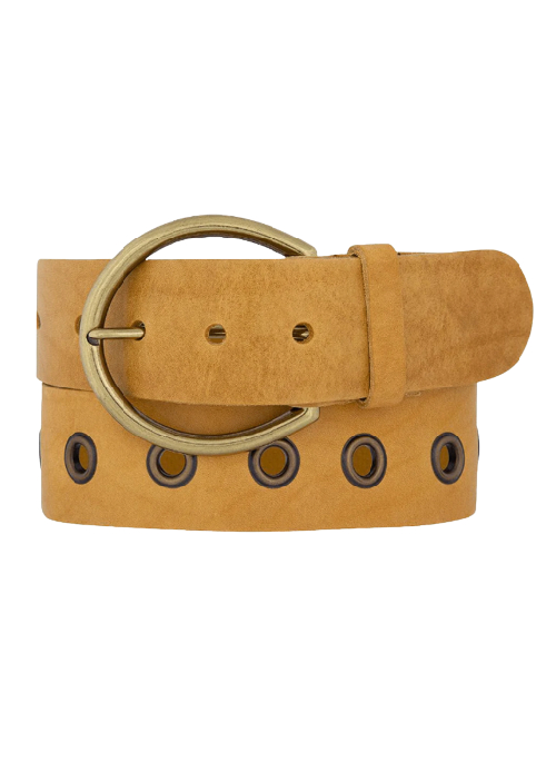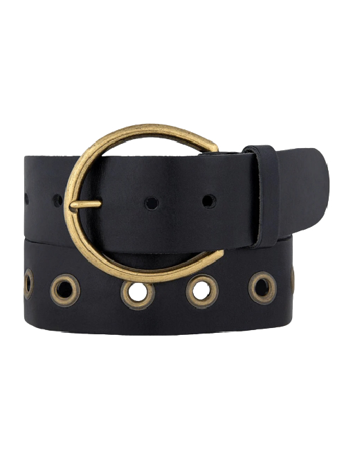 The devil may wear Prada but she's envious of the Sylvie. This high-fashion premium leather accessory features too many style accents to name… but we will! The gorgeous matte gold grommet accents are tied together by an oversized circular buckle giving this waist belt dimension & complexity. Perfect for styling with oversize tunics, maxi skirts, & slouchy dresses, this statement leather belt for women is a timeless piece of the likes that get handed down as "vintage". Luckily at Amsterdam Heritage, we use full-grain leather in our designs so that this premium leather waist belt can truly last the test of time.