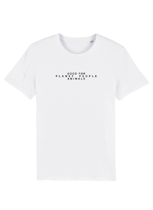 Designer T-shirt in white made from GOTS certified organic cotton and fairly produced. Very comfortable to wear. Retains the fit. Does not warp. With discreet motif print on the front. A basic piece for every day. Goes with everything.Details: