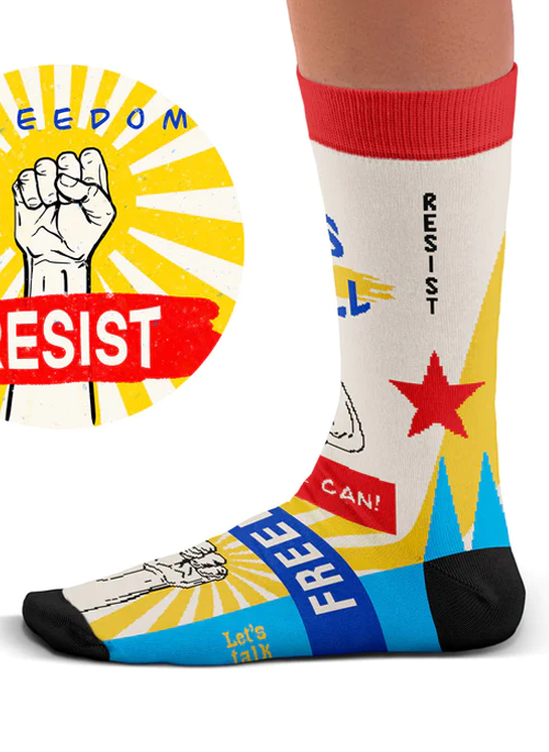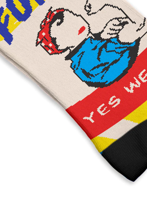 Channel the power of propaganda art with a design inspired by iconic posters such as the 1943 “We Can Do It!”. Originally used to discourage labor unrest and inspire female workers to join the war effort, the poster has since been repurposed to unite women in the fight for equality. These socks make a fashion statement whilst also making a statement about what you stand for. Spread positivity with each step of your everyday life with these unique socks!