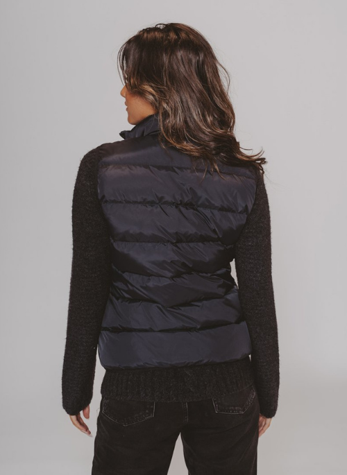 A companion piece to the men's puffer vest, this features all the same quality and details but is made to fit a woman's figure. Comes in the classics: black and navy, zipper frontDetails: