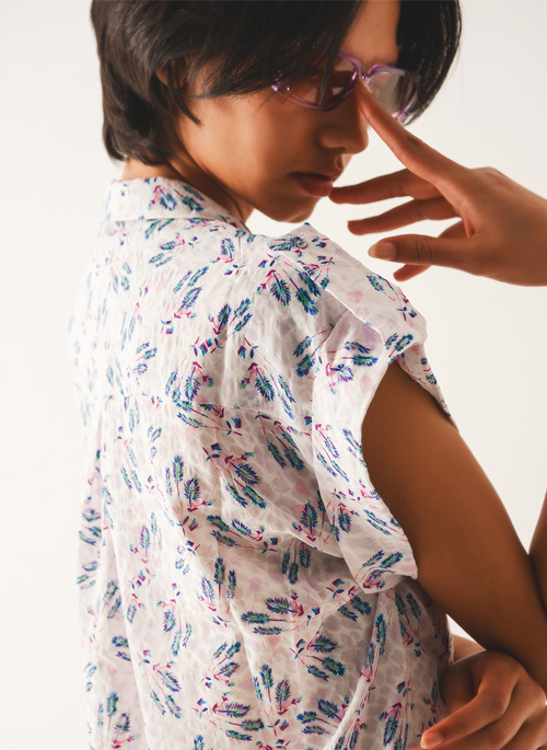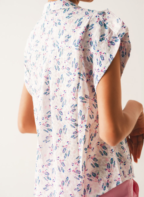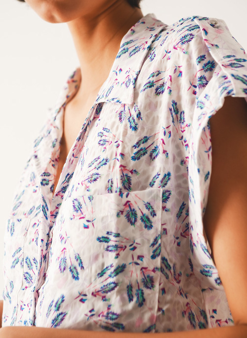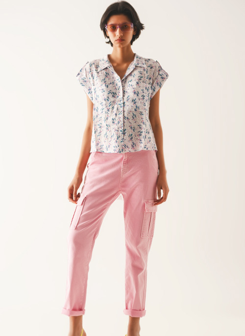 NEW PURPLE BLOUSE WITH POCKETS AND FLORAL PRINT