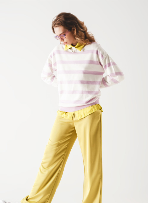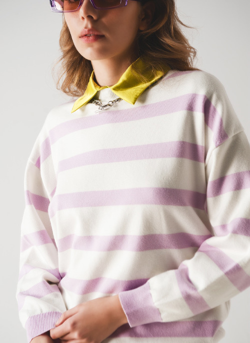 NEW LONG PURPLE STRIPED SWEATER