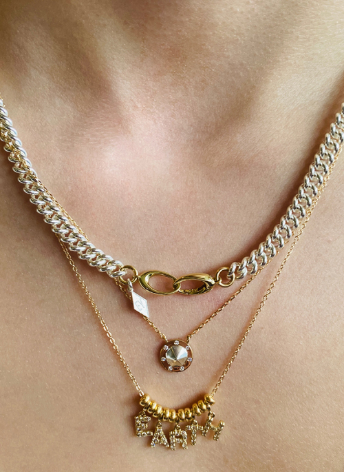 - Sterling Silver Pyramid with 14K Yellow "Halo" and Chain, Diamonds