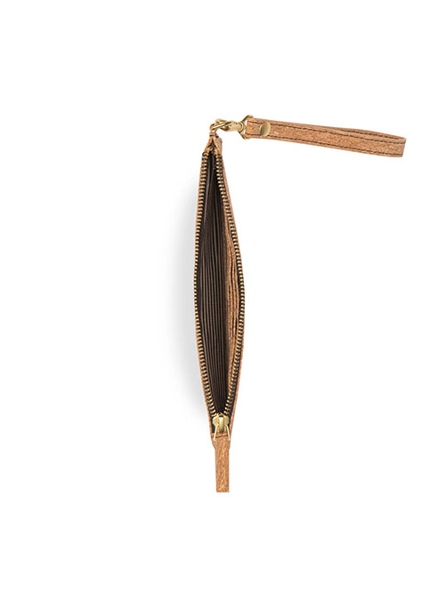 Another clever way to stay organized while on the go, this edition of the Feller zippered pouch is made of rich, natural Portuguese cork lined with cotton sateen and featuring several interior card slots. Secured by a golden YKK metal zipper, and featuring a wristlet loop (that can be removed for a different look), the 9" X 5.5" dimensions give you plenty of room for the usual wallet valuables plus extra space for more indispensables. Cork has many material benefits, being supple, durable and highly resistant to water, mold and mildew, but most critically, it is environmentally friendly. Feller signature ticking stripe interior may match other signature Feller products for a woman conquering her day with style and purpose!
