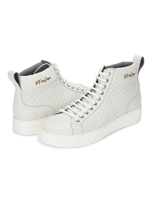 The 52's high in white are crafted with premium Napa leather and finished with a distinct quilted design. This classic shoe style is a fine sneaker that can be combined with any attire, from street casual to high-end fashion. The handcrafted 52 Collection designer sneaker features a padded and removable footbed for optimal comfort, adjustable lace, and a treaded rubber sole for excellent traction. Our chunky high sneaker is designed in New York City and precisely stitched by skilled artisans in Brazil.