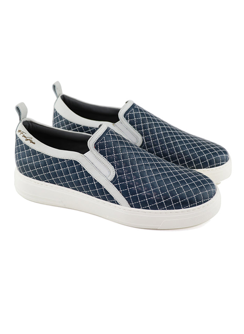 Our 52's low in navy are crafted with fine Napa leather and finished with a distinct quilted design. This classic shoe style is a historical dress sneaker that can be combined with any attire, from street casual to high-end fashion. The handcrafted 52 Collection designer sneaker features a padded and removable footbed for optimal comfort and a treaded rubber sole for excellent traction. This sneaker is designed in New York City and precisely stitched by skilled artisans in Brazil.