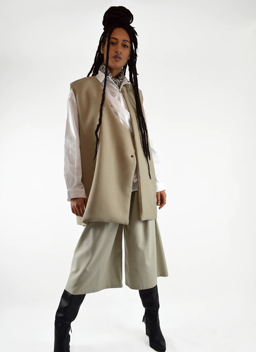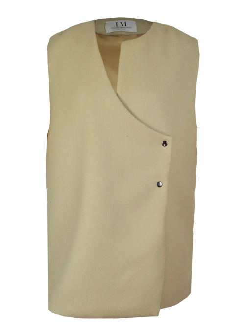 - The RABBAN jacket remains refined with a touch of originality, in particular with its emblematic asymmetrical flap which allows it to be closed on the left side. Made of white wool, sleeveless and collarless, the RABBAN jacket is one of the key pieces in the collection, which gives style to all your looks. It can be easily layered with the ABIJATA coat, or goes perfectly with the CORRINO and ABJICA shirts, for a style that is both minimalist and striking.