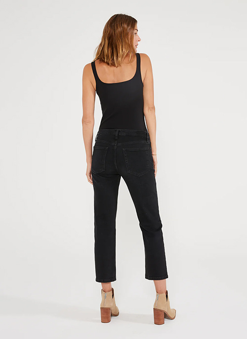 A clean straight fit with a mid rise and vintage construction. Fitted through the hip and thigh, then easy through the leg. An organic cotton stretch denim adds comfort and movement.