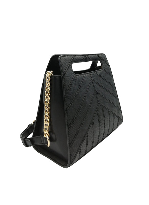 - Women's crossbody bag with front cutout handle and signature triangular salmon patchwork design