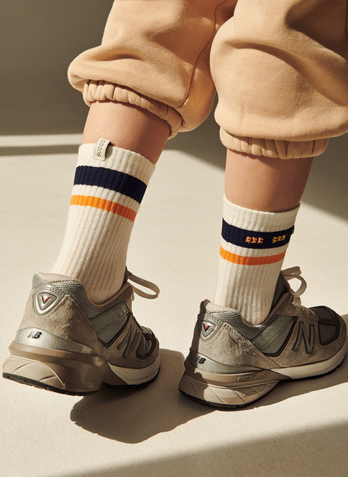 Incorporating your love of retro sportswear into everyday looks, these hand-embroidered tube socks are a playful statement-making accessory to pair with your favourite sneakers for a fun flash of colour.