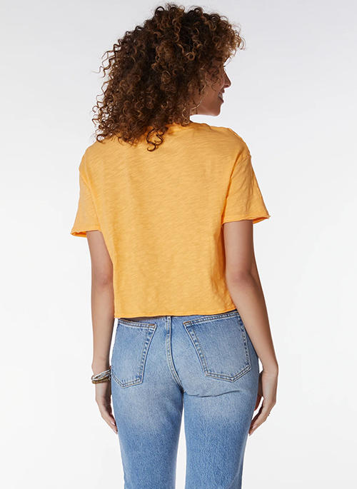 This crew neck tee is the perfect cropped tee. Designed with a boxy, boyfriend fit, double layered raw hems, and a ribbed neckline this tee is sure to become a staple.