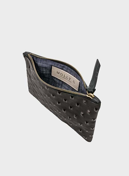 A mini version of our classic Rebel clutch. Did we mention perfect? Same buttery, signature Molly G leather with chambray lining. Use this clutch on its own or as an organizer within a larger bag. Pack up your keys, wallet, iPhone, and small essentials. Definitely a go-to wardrobe staple. You probably need a couple. Perfect carry-alls for inside your favorite Molly G bags.