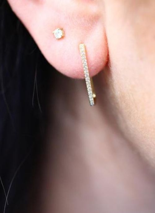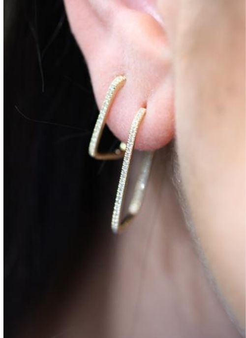 The Rectangular Shaped Hoop earrings are created in 14k yellow gold with 0.15ctw diamonds on the front of the hoops and from the inside so you can always sparkle!