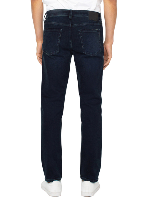 Relaxed straight denim with memory stretch featuring vintage characteristics in a must-have dark denim wash. Evokes maximum comfort without compromising style and fit.