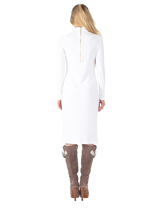 Knitted, fitted dress with short turtleneck made of a soft and pleasant to the touch material.