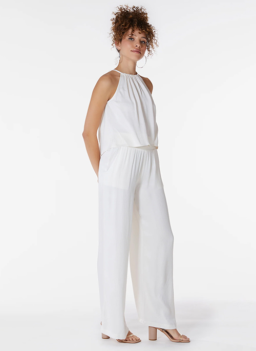 These wide leg pants style up any wardrobe. Designed with a wide ribbed waist, pockets, and a drapey wide leg. these pants can be paired with any of your favorite tops or our matching tank!