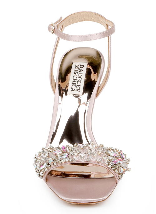- Rider is your new, most glamorous friend. Featuring a delicate sling back and ankle strap, this silk satin beauty stands tall with a 3 ¼ inch heel, and a toe strap covered in crystals and jewels.