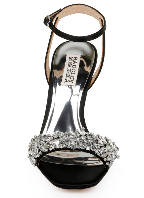 - Rider is your new, most glamorous friend. Featuring a delicate sling back and ankle strap, this silk satin beauty stands tall with a 3 ¼ inch heel, and a toe strap covered in crystals and jewels.